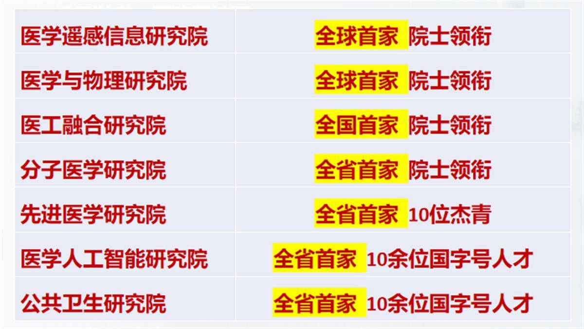 七大跨学科融合医学研究中心。