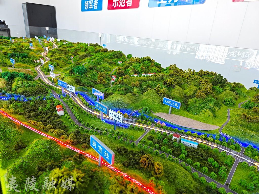 在项目驻地展示大厅内,巨大的沙盘展示了G348鸦鹊岭至土门段公路工程建成后的美好图景,一旁的大屏幕上实时转播各施工节点现场画面,通过数字化、标准化建设,项目建设情况尽收眼底,一览无余。