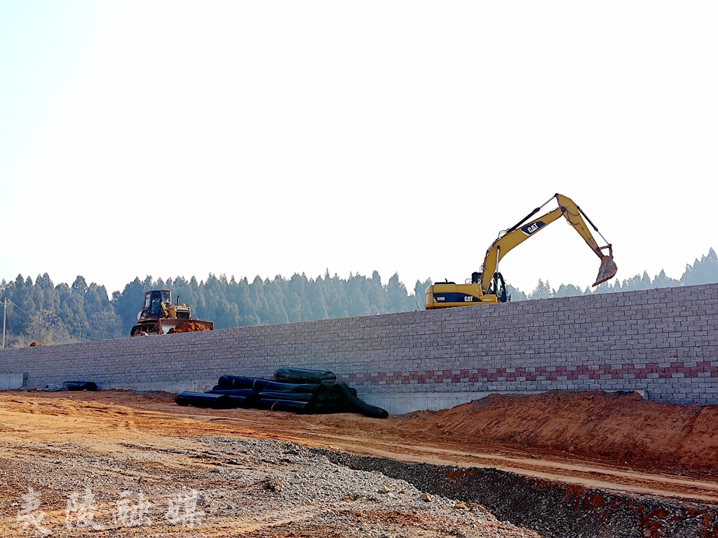 与此同时,高湖冲段的加筋土挡墙正在施工作业,一排错落有致、造型美观的挡墙格外引人注意。该段挡墙全长约120米,设计高度为13米。据现场施工负责人介绍,该段路基原地貌为池塘,属于典型的淤泥层厚、路基承载力弱的软基路段。