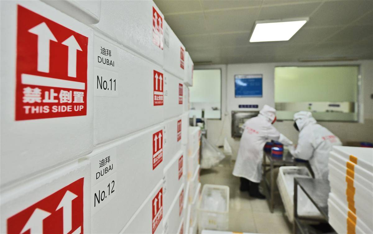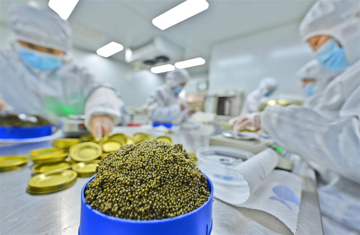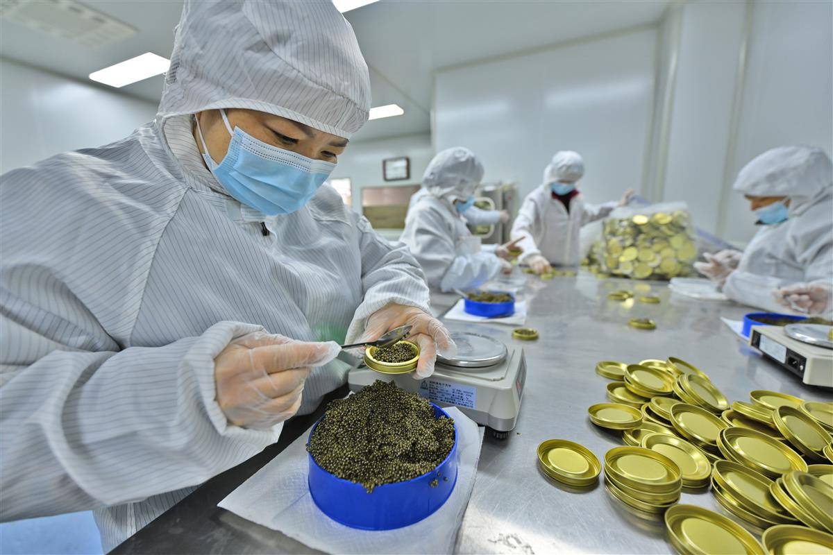 图为工人正在包装即将销往海外市场的鱼子酱。(湖北日报全媒记者 刘曙松 通讯员 朱灿义 摄)