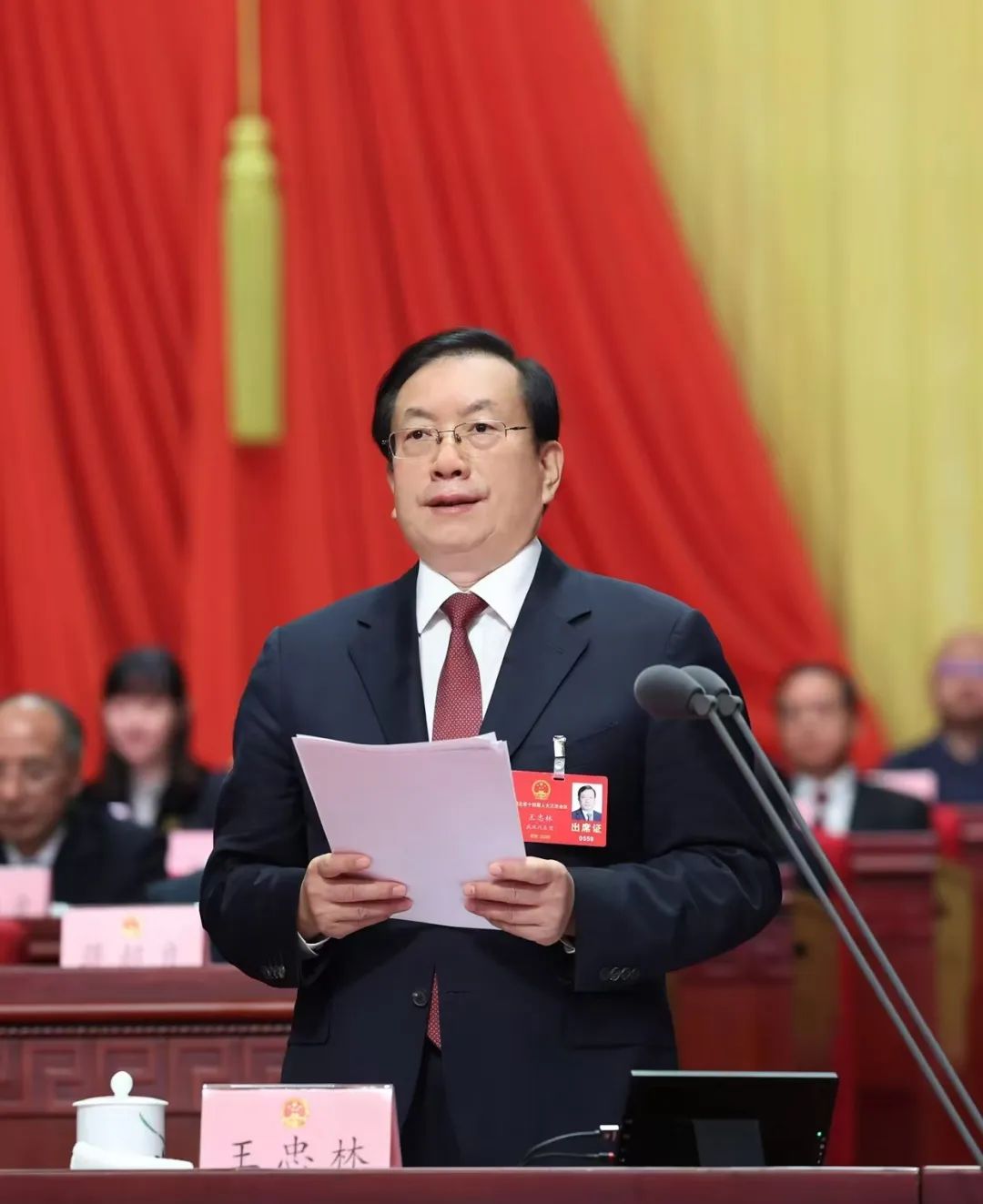 在主席台就座的还有:李殿勋、蒋超良、王蒙徽、王晓东、孙伟、王生铁、宋育英、张昌尔、徐松南、侯淅珉、郭元强、宁咏、王林虎、琚朝晖、邵新宇、吴海涛、郦斌、江勇、王玲、梁伟年、周洪宇、万勇、王建鸣、徐文海、程用文、张文彤、陈平、蔚盛斌、彭勇、尔肯江·吐拉洪、张柏青、马旭明、张维国、杨玉华、王红玲、王兴於、肖菊华、游劝荣、王守安、胡正强、闫贵军、李兵、周先旺、盛阅春、胡立山、杨智、韩进、杨自春、刘冬顺、李富民、钱建余等和主席团其他成员。