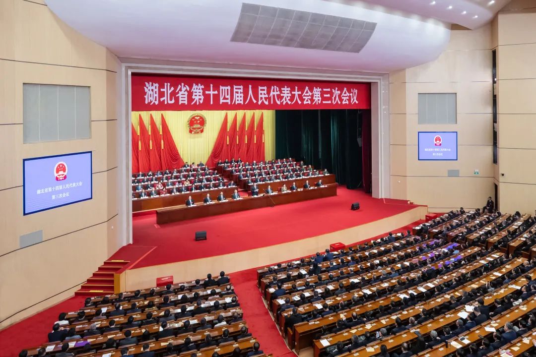 1月20日上午,湖北省十四届人大三次会议圆满完成各项议程,在武昌洪山礼堂胜利闭幕。
