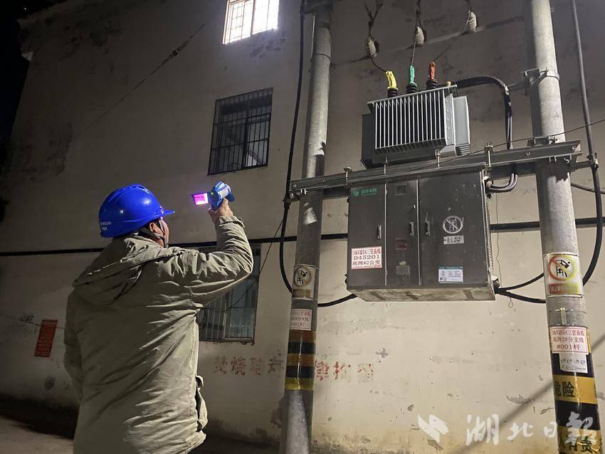 湖北日报客户端讯(通讯员 王卫龙)近日,随着气温骤降,乡镇用电负荷持续攀升。为保障居民在寒冷天气下的可靠用电,国网丹江口市供电公司凉水河供电所积极开展春节保供电“双优四零”活动,组织人员在夜间开展供电设备测温工作,及时排查设备隐患,全力守护乡镇电网安全稳定运行。