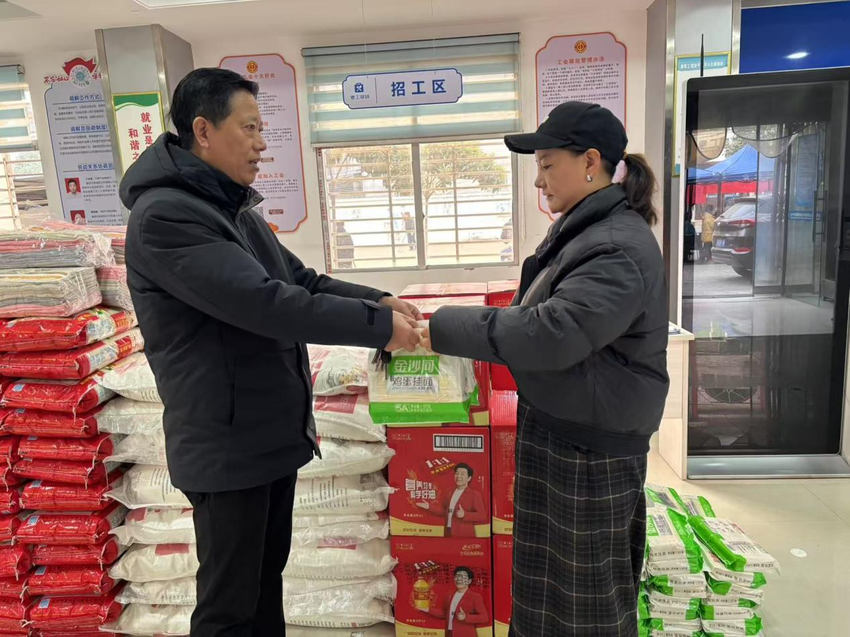 1月21日,太平店镇总工会于镇人社中心零工驿站慰问货车司机、一线职工、农民工等重点群体职工48人,为他们送去大米、面粉、食用油、挂面、毛巾等慰问品,把党委政府的关爱和工会“娘家人”的温暖及时送到他们的心坎里,这是对新业态劳动者的关心关爱的体现,也是2025年“双节”送温暖活动的重要内容。