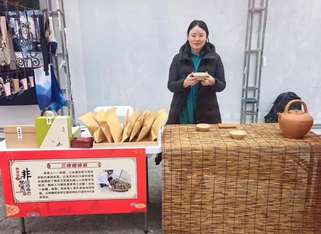 1月18日—20日,2025年沙市区首届非遗年货节在解放街道宝塔市集举行。活动现场,多位非遗传承人展示了荆楚茶道插花、三皮罐凉茶、葫芦烙画镶嵌彩绘、沙市米酒酿制技艺、荆州印泥制作技艺等传统技艺,吸引了众多市民驻足观看。