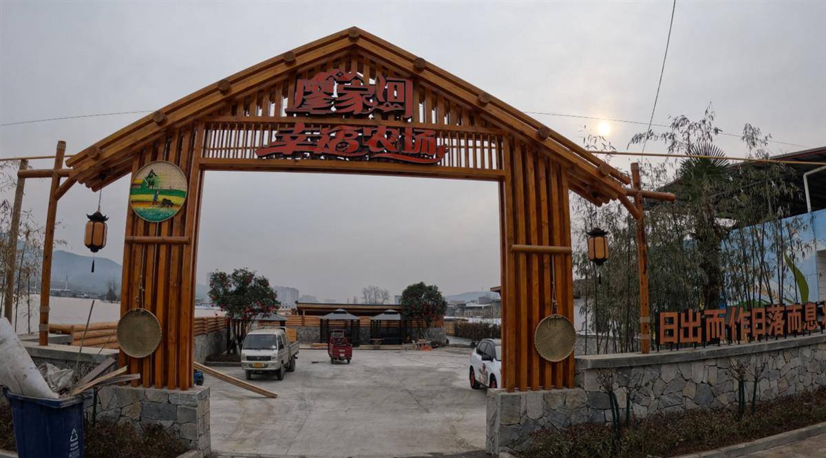 “日出而作,日落而息,将平淡的日子过成诗。”围墙上的一行土黄大字,提示廖家河幸福农场到了。