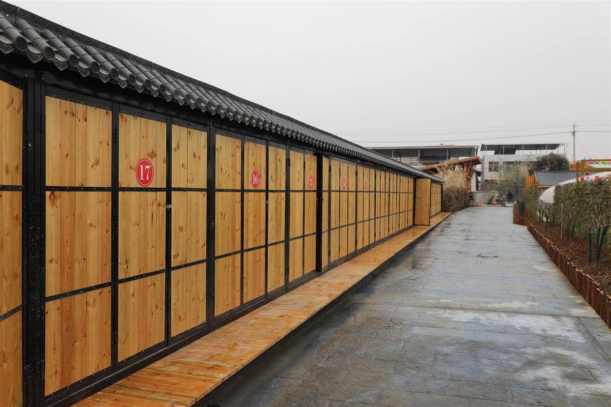 穿过实木搭建的房屋外形大门,就踏入了幸福农场。前厅休闲区,4座钢构休闲亭内,固定式长条椅和条格桌子,被擦得锃亮。在美食操作间,柴火烟囱灶,静待烟火。
