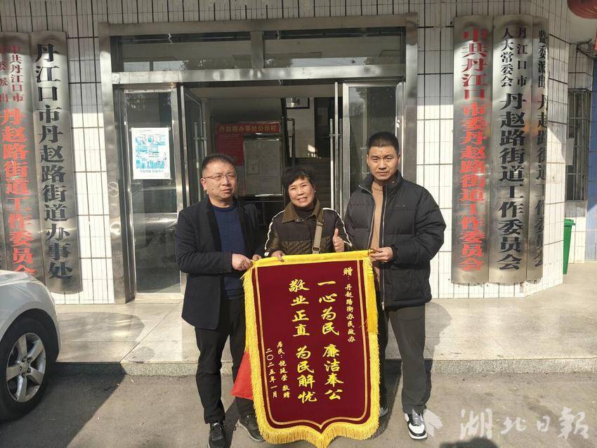 湖北日报客户端讯(通讯员 赵安东 杨卓童 )“真是太感谢你们了,终于可以安心过年了!”漫水桥社区饶大姐感激地说着。1月20日下午,丹江口市丹赵路街道办事处民政办收到了一面印着“一心为民 廉洁奉公 敬业正直 为民解忧”特殊锦旗,为街办帮助解决住房问题表示诚挚地感谢。