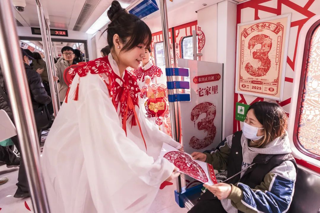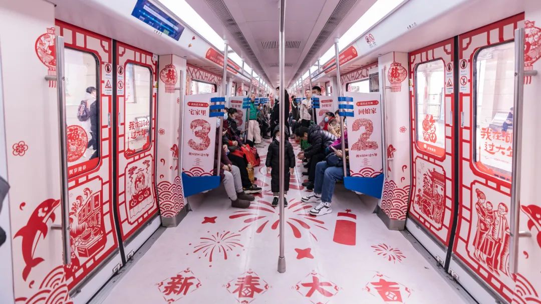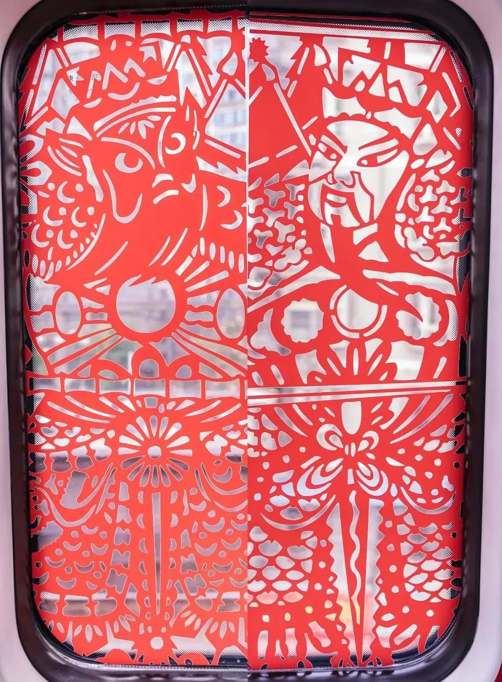 “我看到车厢里面有放烟花、给红包的剪纸场景,真的感觉好热闹,好像已经过年了!每个细节都好有节日气氛!”车厢内的剪纸作品犹如一场视觉盛宴,精心呈现了从除夕到初五春节文化的每一个细节。