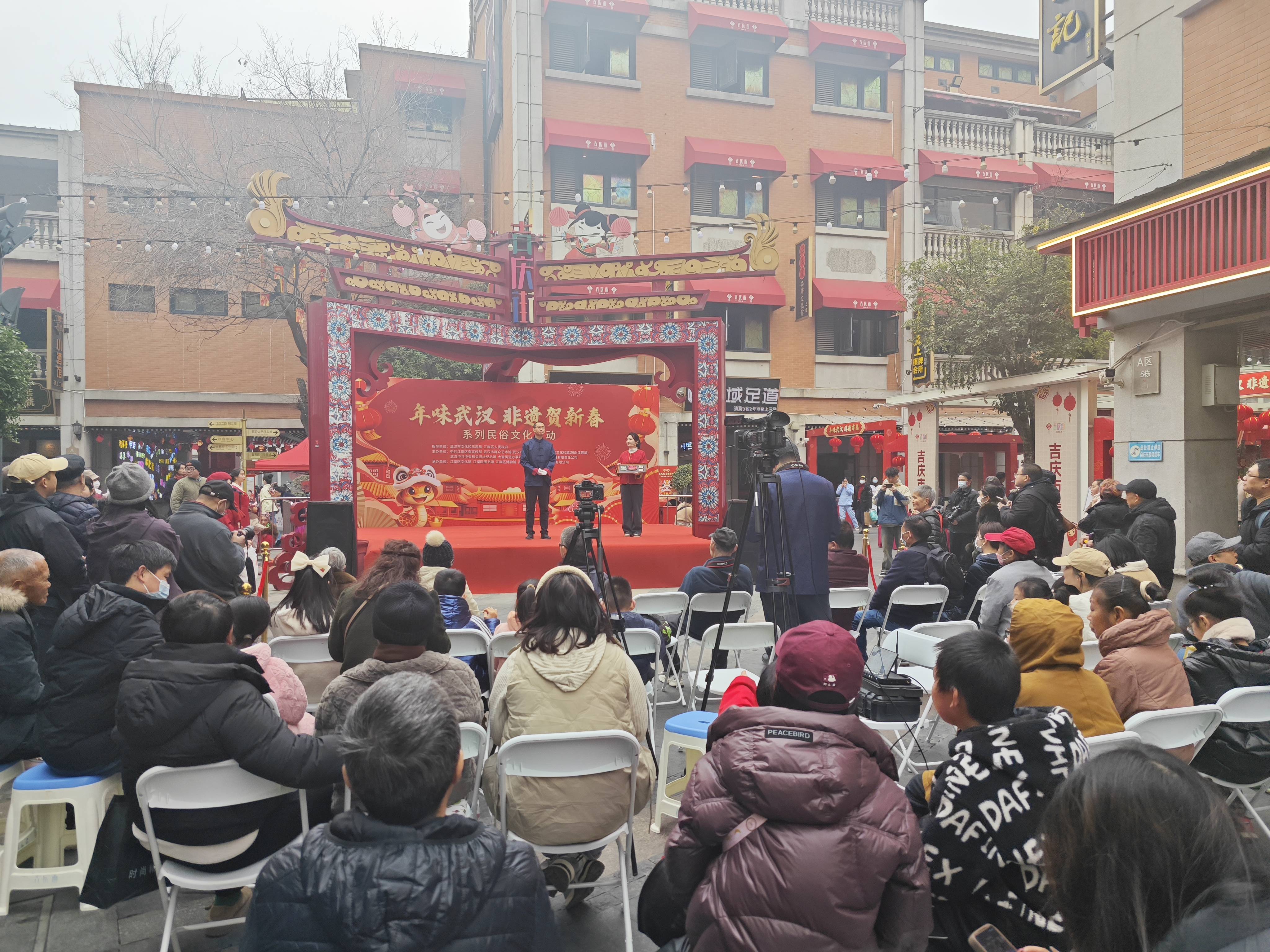 当天中午,在吉庆民俗街中心舞台,来自武汉市“百姓明星”选拔大赛的优秀选手们以及众多文艺爱好者为观众呈现了一场精彩绝伦的文艺演出。通过歌舞、曲艺、器乐、杂技等艺术形式,传递了节日的喜悦与祝福,让观众们感受到了浓浓的年味。