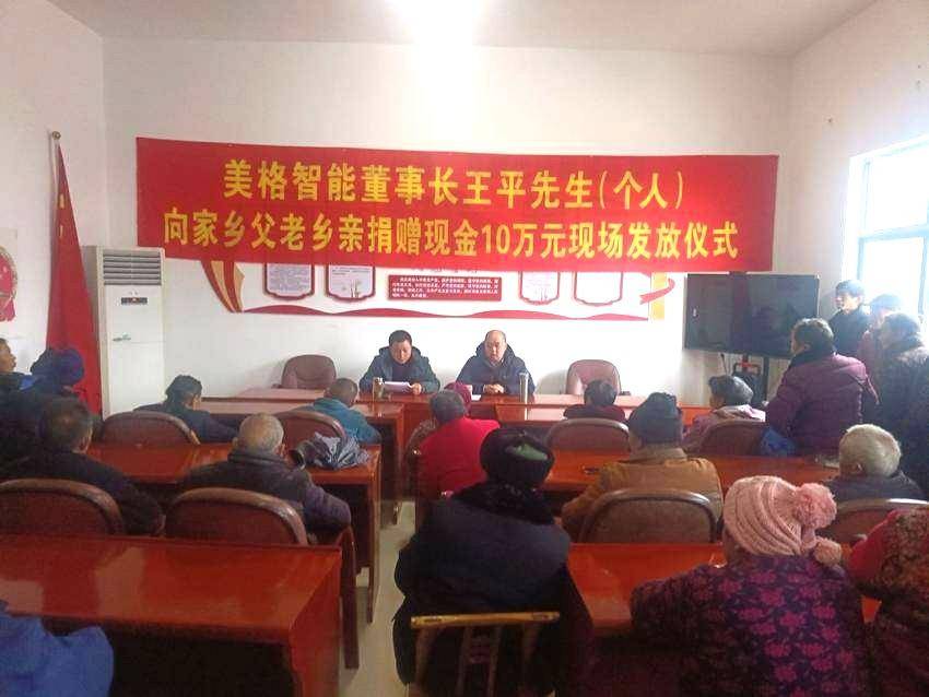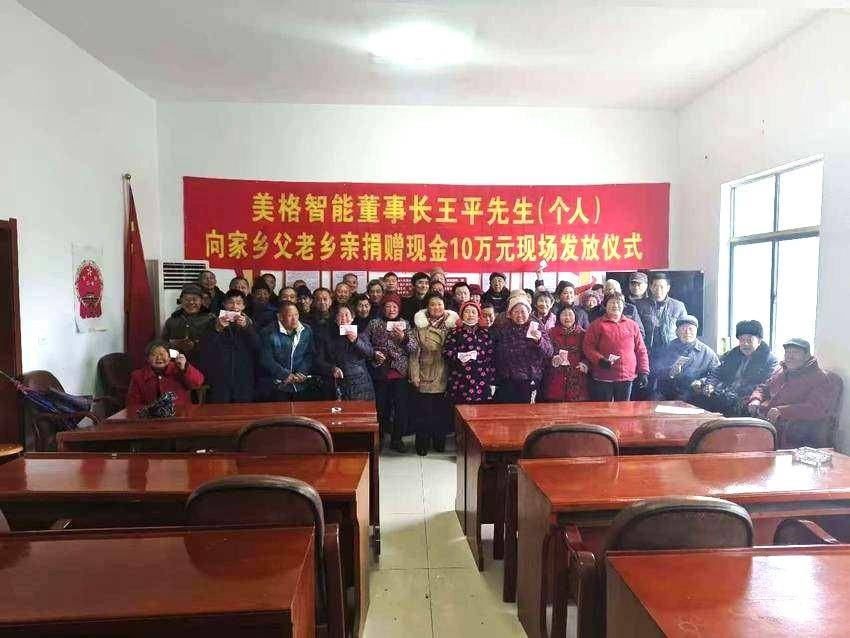湖北日报客户端讯(通讯员高清书、张鑫)1月24日,在谷城县紫金镇中股岭村,全村近100位老人欢聚一堂,参加上市企业、深圳美格智能技术股份有限公司董事长、总经理王平为家乡父老乡亲捐赠10万元的发放仪式。