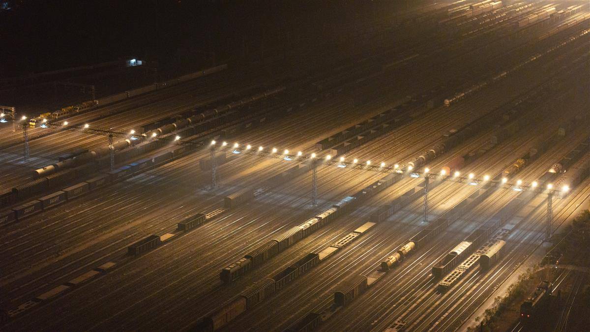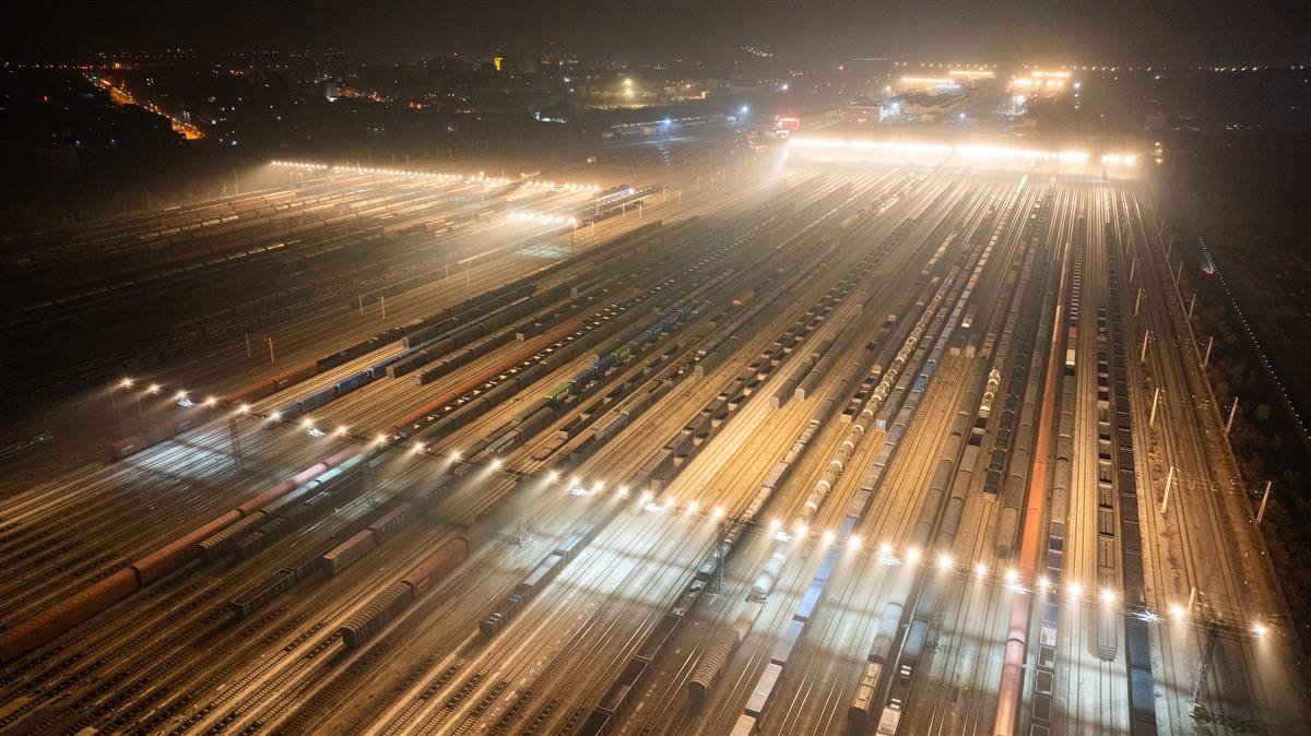 2025年1月20日晚,武汉北编组站内灯火通明,一列列货运列车在这里交会、解编、发往全国各地。武汉北编组站作为全国铁路网货物运输的重要枢纽之一,承担着电煤专列、中欧班列、铁水联运、铁海联运等重点运输任务。春运期间,每日有超过2万辆车在此集结、中转,宛如一个巨型的铁路“快递中转站”,将东南西北的物资“分拣”后送达全国各地,让春运期间货物运输不“堵车”。(湖北日报全媒记者 何宇欣 通讯员 王世炜 潘秋然 摄)