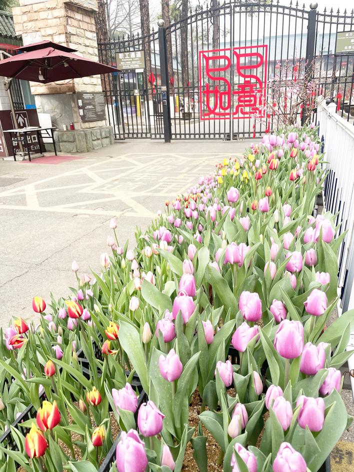 武汉植物园大门口,郁金香已盛开 摄影:楚天都市报极目新闻记者陈希