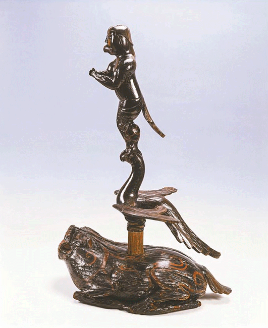 △战国 漆木彩绘蟾座凤鸟羽人 荆州博物馆藏