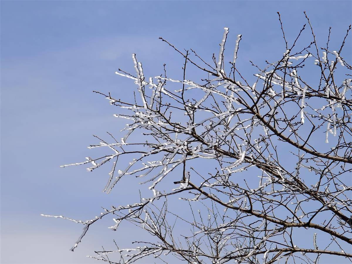 雾凇,俗称树挂,是寒冷天气中出现的一种自然景观,常形成在树枝、电线或者其他地物迎风面上。它形成的自然条件苛刻,是空气中水蒸气的凝华现象,既需要气温低,也需要水汽足,同时具备这两个极为重要而又相互矛盾的自然条件更是难得。因此人们常说雾凇是“开在冬天里的花”。
