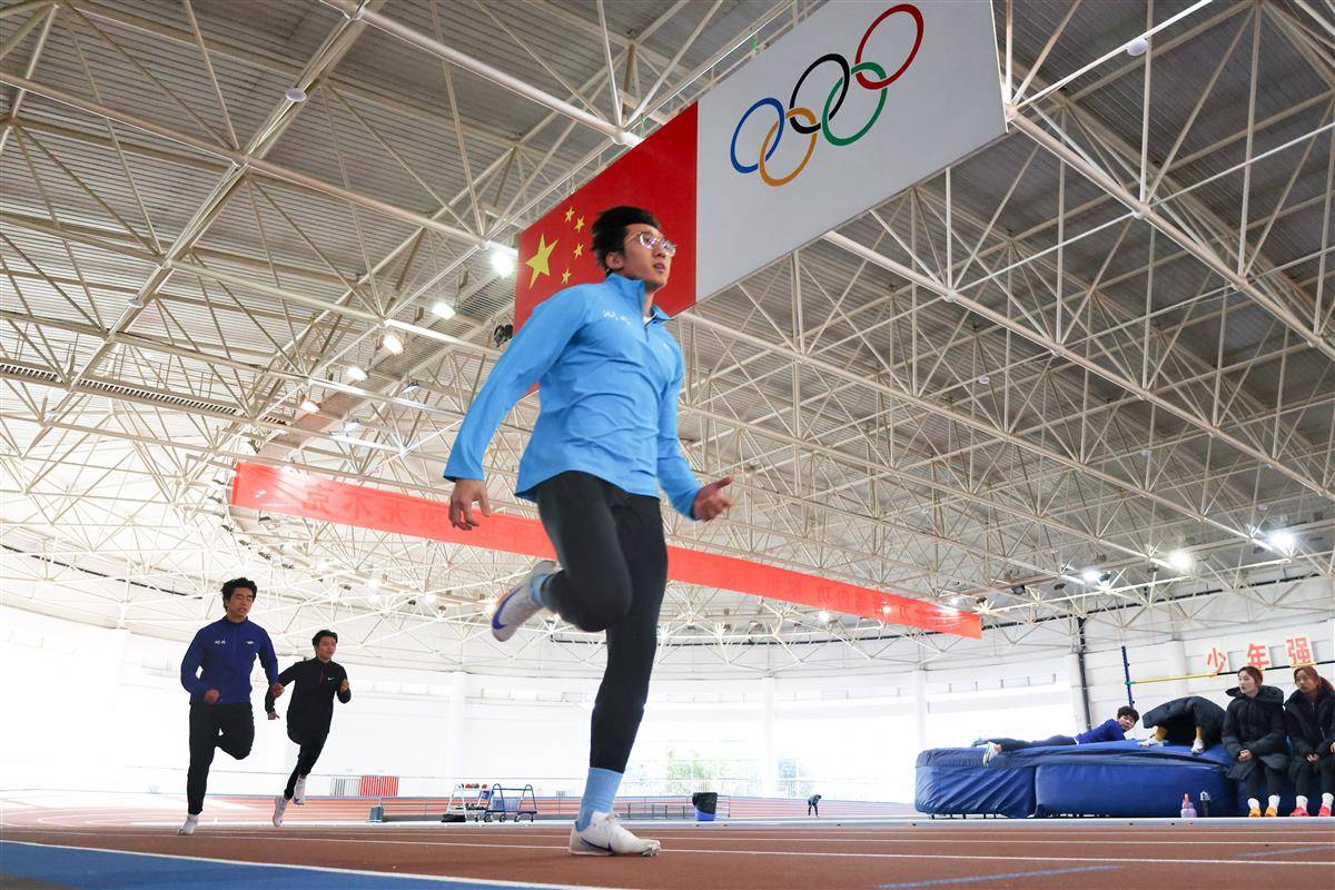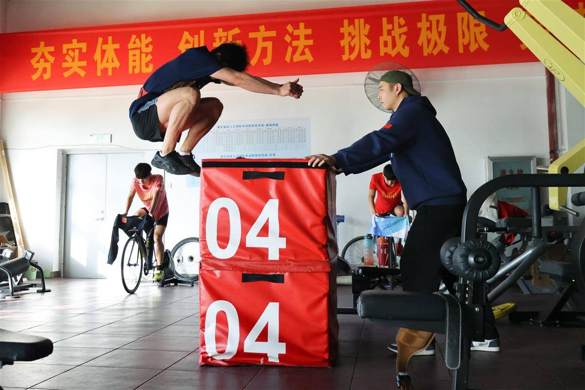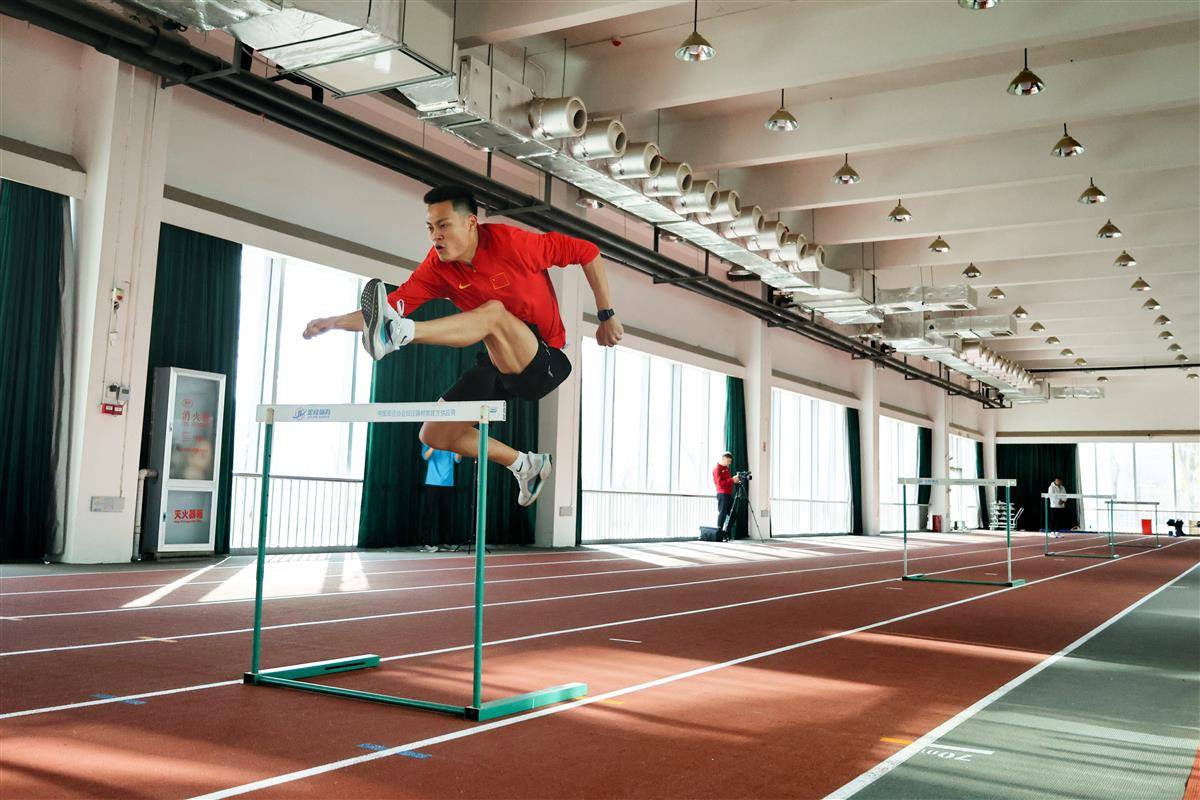 省田径中心室内田径场,省田径中心跨栏组、短跑组、400米组和女子标枪组正全力进行高强度训练,男子110米栏运动员朱胜龙说:“不能休息,不敢休息,更不愿休息!争分夺秒的训练才是实现突破的底气。”在他身后的墙上,“更高、更快、更远、更强”八个醒目的大字和高悬的五星红旗、奥运五环旗犹如无声的战鼓。