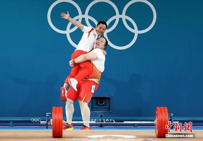 图为李雯雯举起教练(资料图)。图/视觉中国