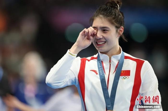 图为张雨霏在颁奖结束后流下了眼泪(资料图)。图/视觉中国