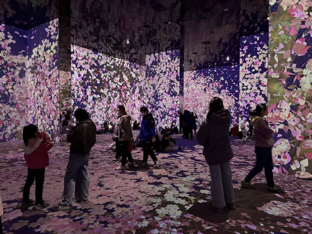 武汉民众乐园一梦华胥・幻境浮世绘数字艺术展里,观众沉浸式体验360度光影世界。张倩倩 摄