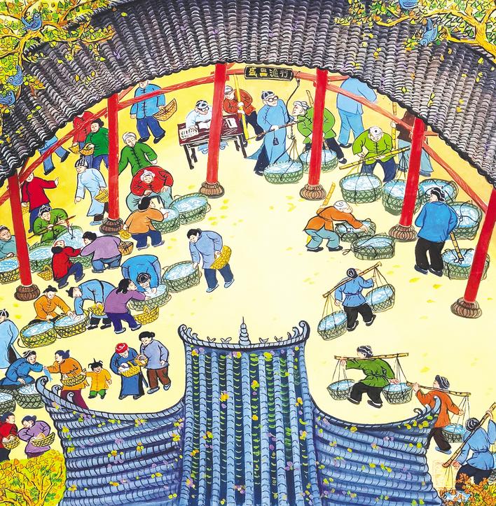 在展览上,观众们能发现,农民画不厌其烦地表现生产劳动、大自然、民风民俗和民间故事。每幅画上几乎不留白,造型上也不讲究透视、空间、光感或质感。“满满当当,实实在在地画出身边的人和生活,”农民画作者舒爱姣在画展开幕接受记者采访时表示,“我的画作就是要画出接近土地的感受。”