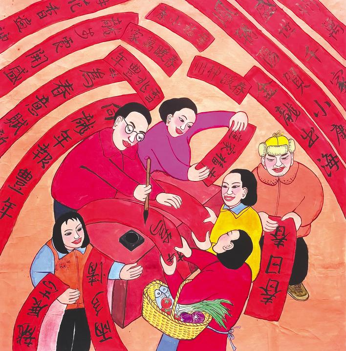 2025“新生活·新风尚·新年画”展示共展出80件优秀新年画作品,观众可以在展览上看到来自“中国民间文化艺术之乡”湖北黄州的农民画、湖北省非物质文化遗产代表性项目老河口木版年画,还有从全国各地征集遴选的优秀新年画作品。走进年画展厅,绚烂与热烈扑面而来。年画描绘了各地群众多姿多彩的生活:播种、收割、打糍粑、做豆腐……人们在田间地头忙得热火朝天;放烟花、舞鱼灯、舞狮子……四方乡亲敲锣打鼓,欢庆节日的到来;看大戏、跳广场舞、跑马拉松……老百姓在家门口就能参与丰富多彩的文化活动。画面中更有农村电商、科技兴农、直播带货等现代生活场景,以浓浓的生活气息和昂扬向上的精神面貌,映射出新征程中的火热实践,寄托了人们对美好生活的向往。