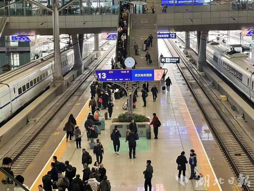 湖北日报讯(记者胡祎、通讯员王琪)从中国铁路武汉局集团有限公司(以下简称“武铁”)了解到,2月1日是农历正月初四,外出务工人员集中出行。根据铁路售票数据分析,目前至2月4日正月初七,武铁客流每天以10万人次的增幅快速攀升。2月1日预计共发送旅客66万人次左右,比昨日(1月31日)增长13万人次。其中武汉、汉口、武昌三大站共预计发送旅客21.5万人次左右。长途客流主要去往北京、上海、广州等方向,中短途客流以湖北省内各地市到达武汉地区为主。为满足旅客出行需求,武铁当天共加开始发临客92列提升运力。