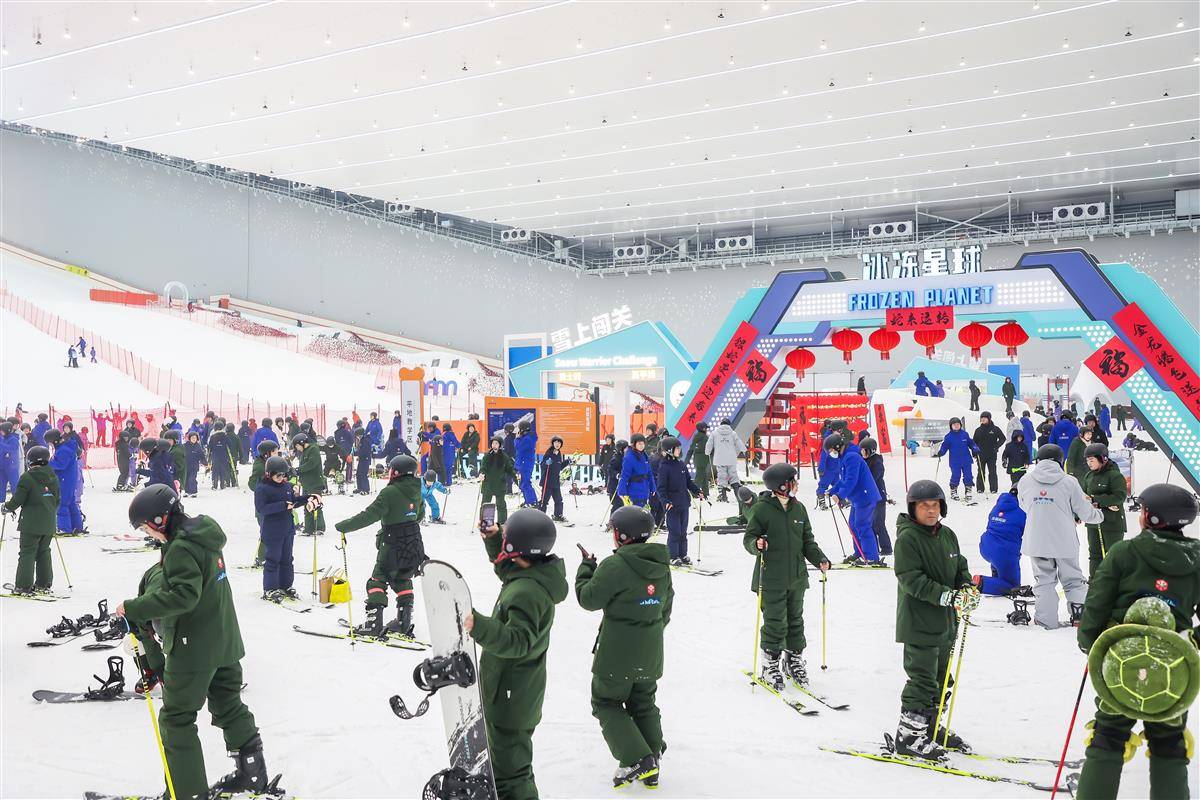 甘露山文创城雪世界总面积达18.8万平方米,其中冰雪综合体约9万平方米。自去年11月开幕以来,这个集娱乐、休闲、文化于一体的冰雪新贵,便迅速成为滑雪爱好者和南方“小土豆”们的嬉雪热门地。