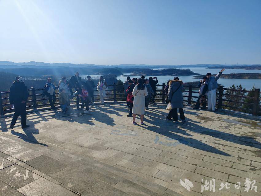 在碧水蓝天观景台,来自陕西、十堰、武汉的外地游客络绎不绝,人们登上平台,和家人朋友拍照留念,共同享受春节假期团聚的欢乐。