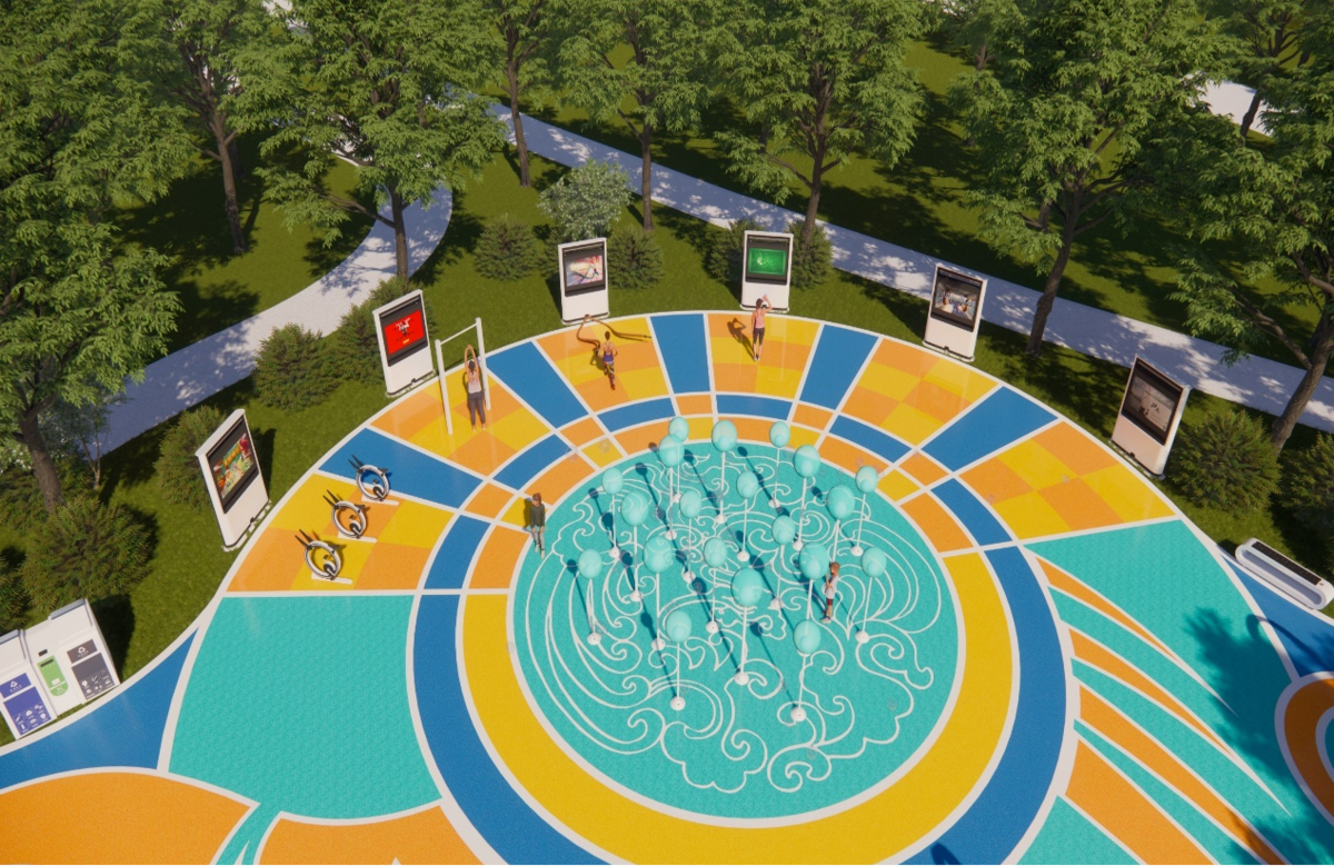 在绿廊的东侧,打造出面积约5000平方米的新轴广场,设计上跨防汛仓库的人行桥,取名安平桥,取义安康平安祝福之意。在广场边还设计18000平方米的疏林草地空间,可供市民休闲集会,或举办大型节庆活动。