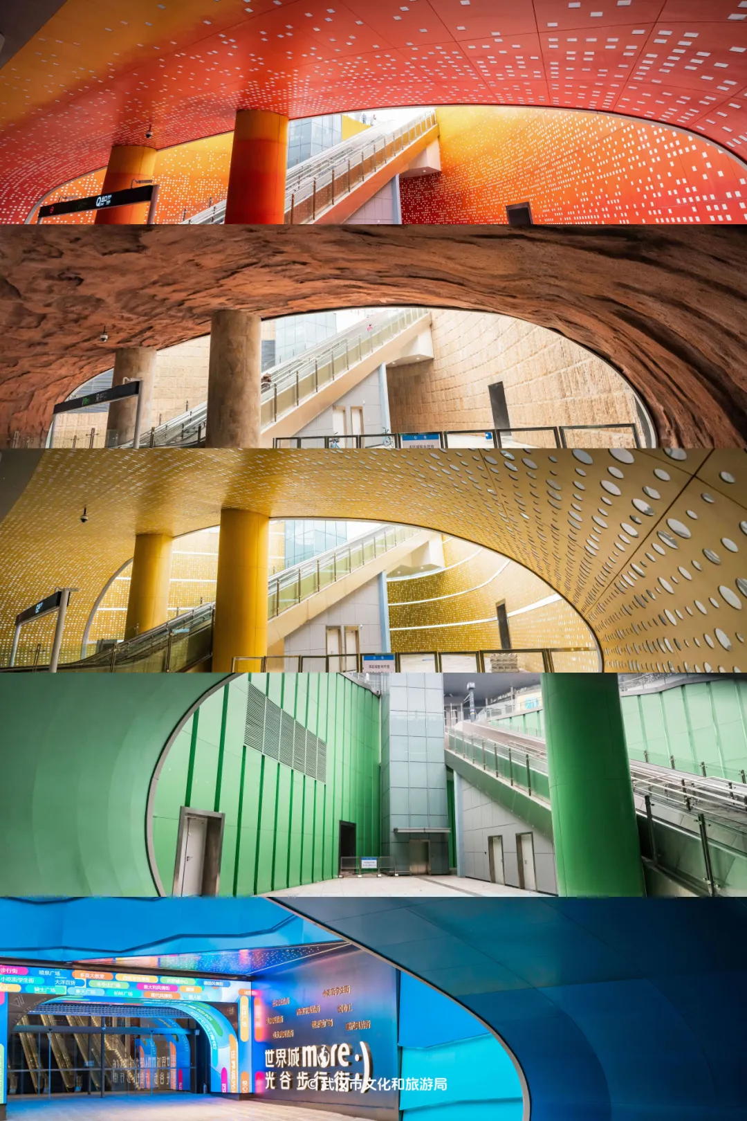 光谷广场站以“金、木、水、火、土”五行传统文化主题为导向