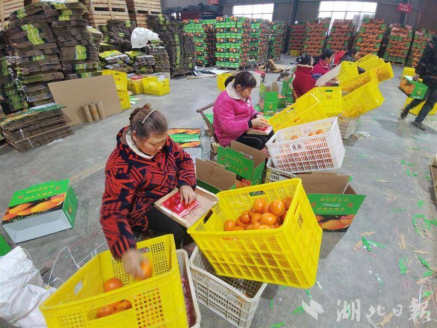 新年伊始,枝江市仙女镇桔缘柑桔专业合作社,现场宛如一片柑橘的海洋。工人们正有序地进行套袋、装框、分类作业,一派热闹繁忙的喜人景象。