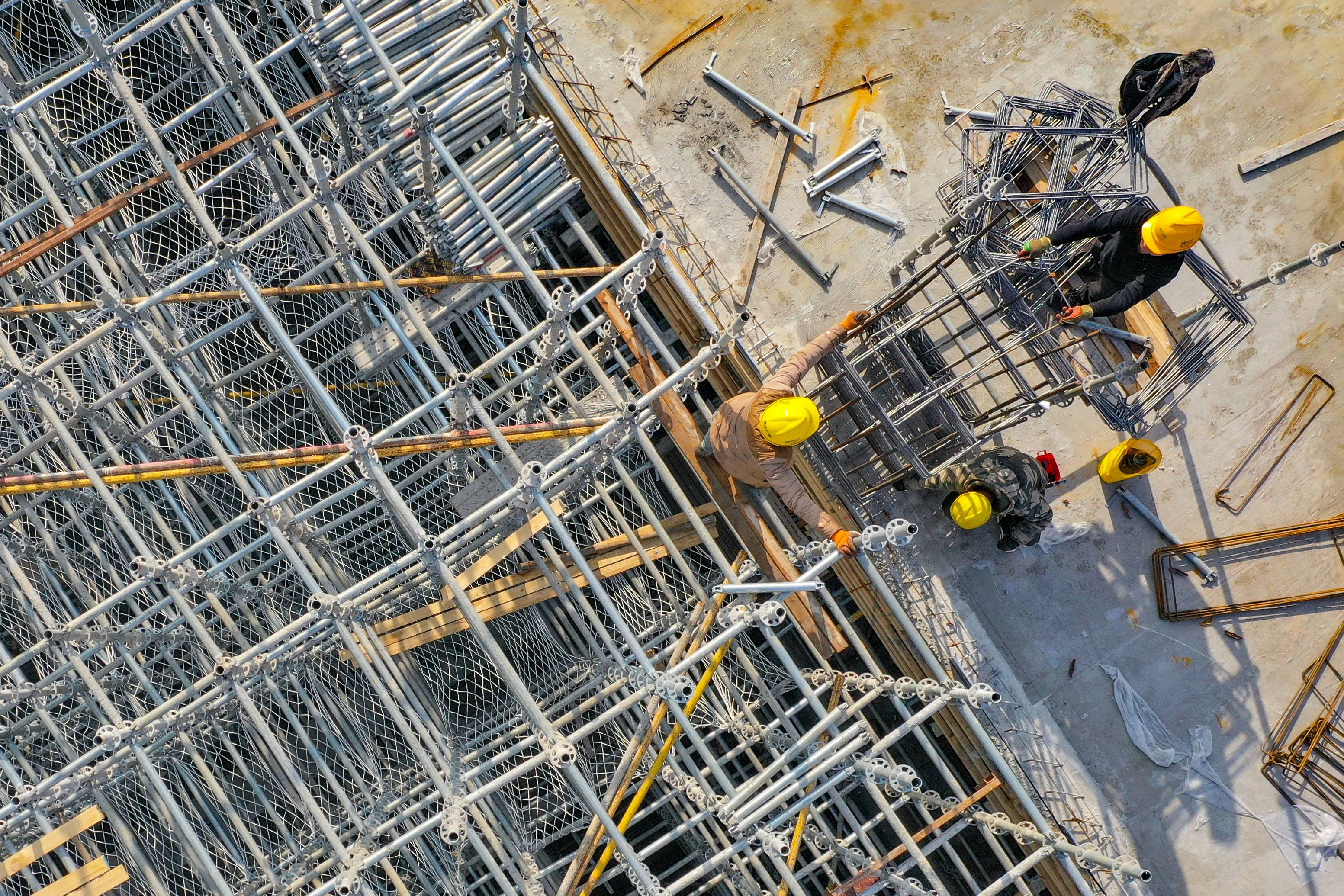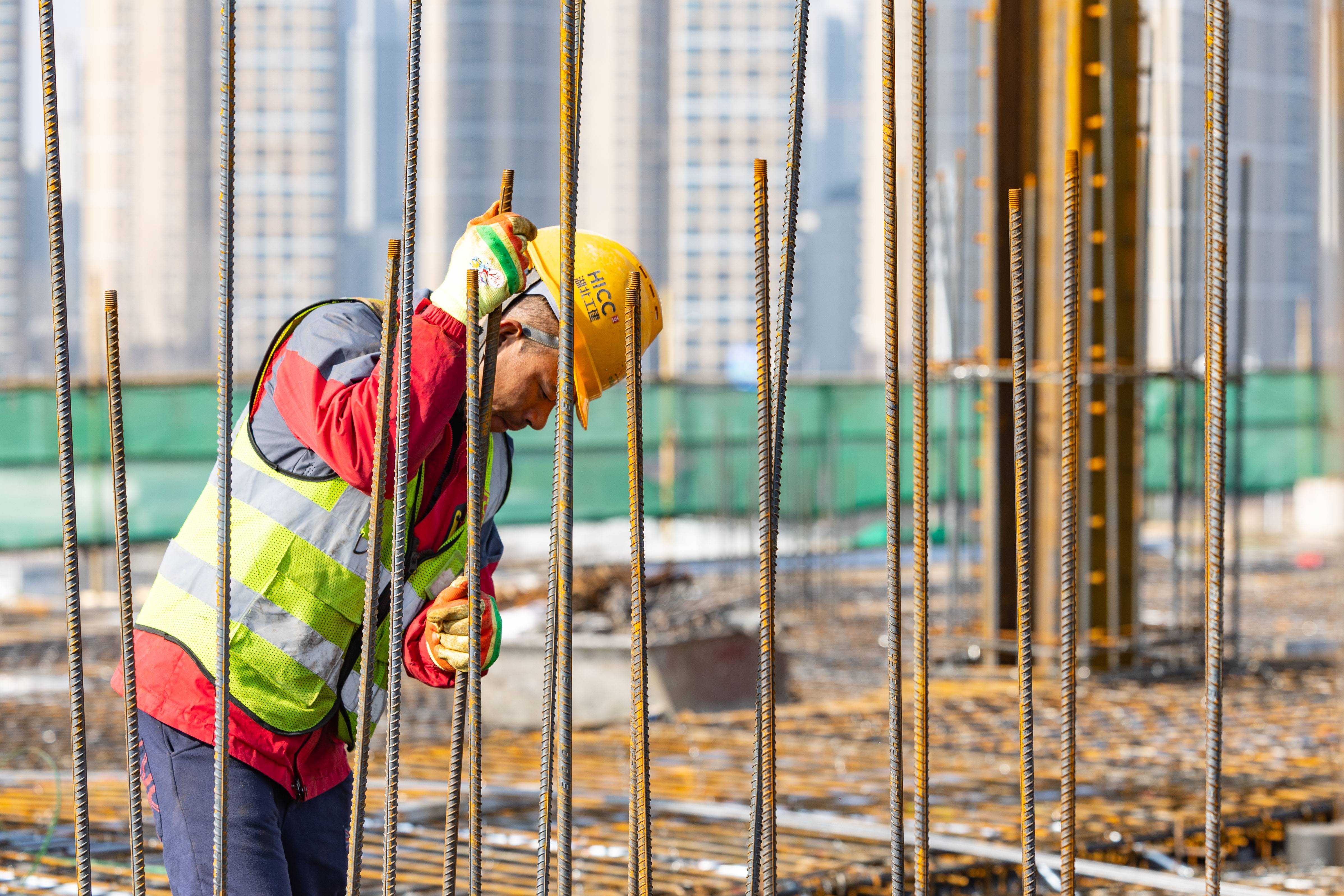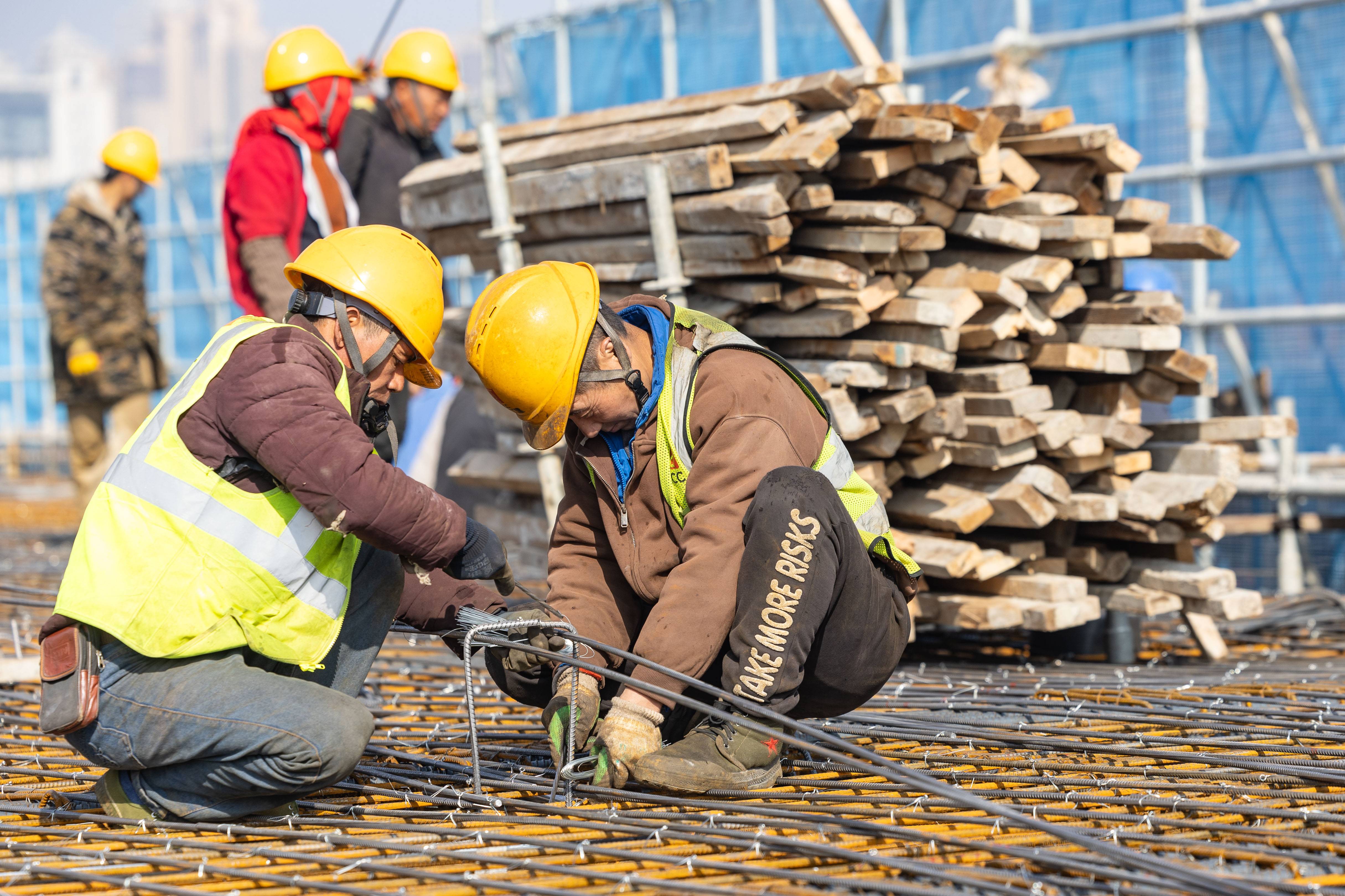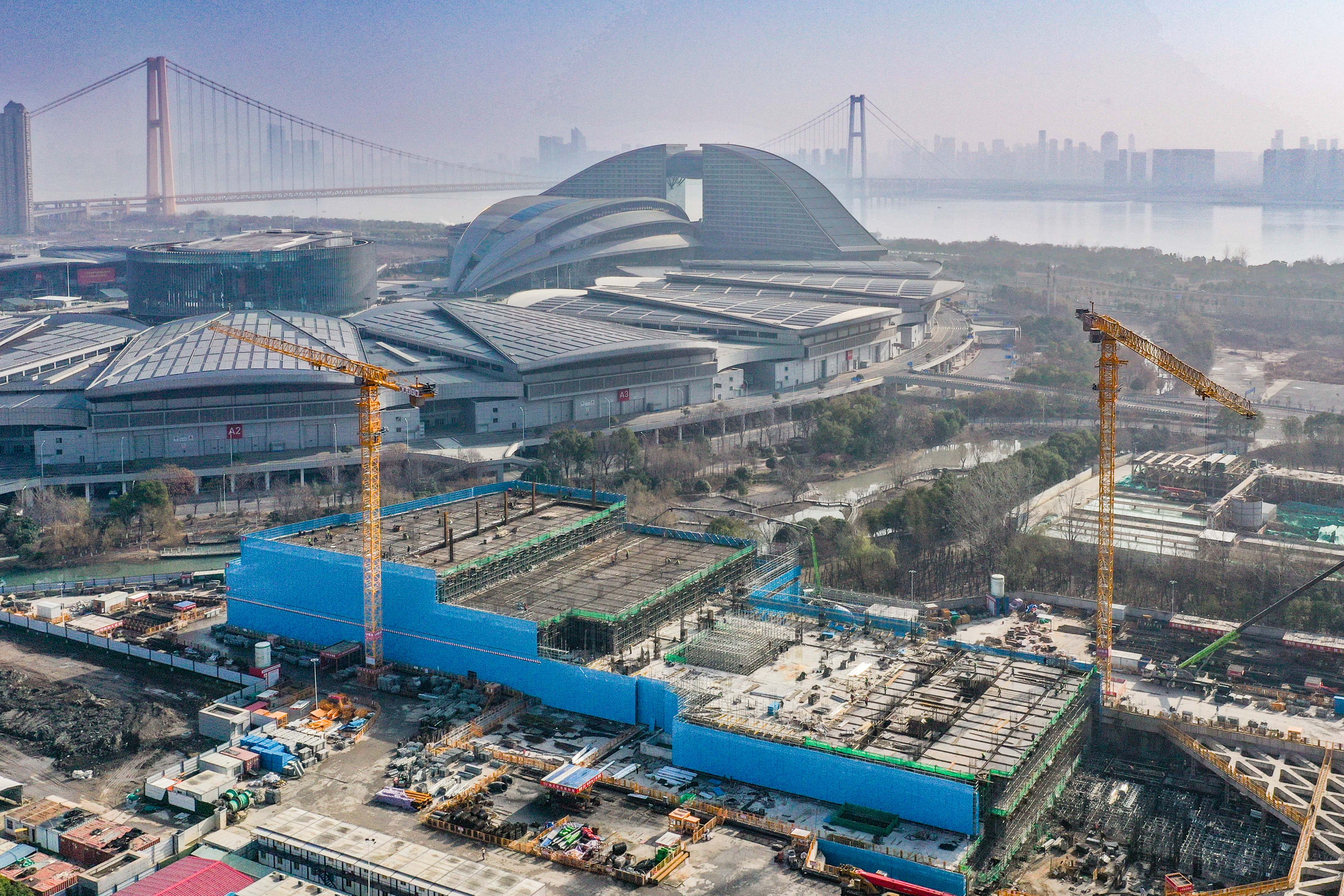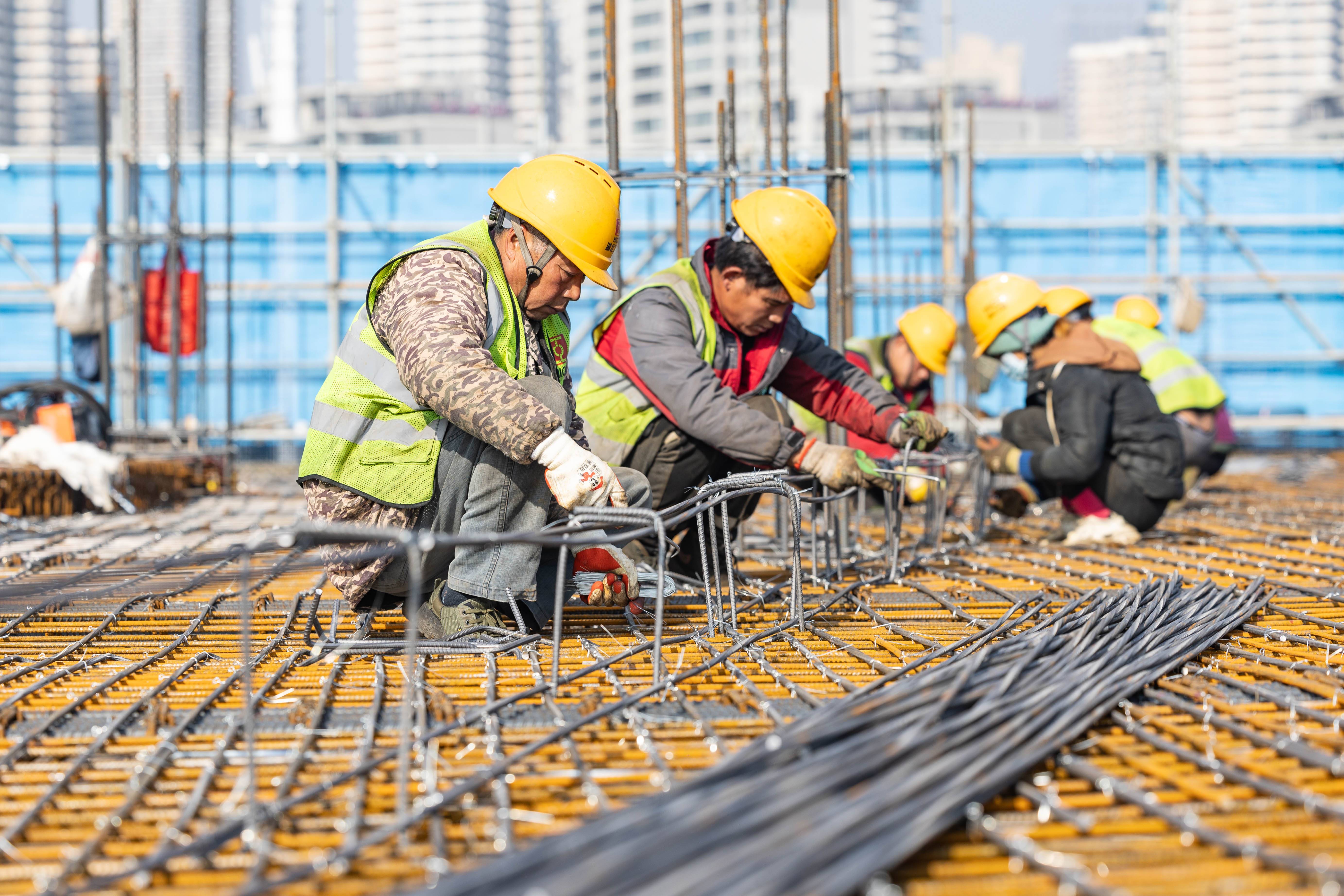 2月4日,在武汉市汉阳区国博大道武汉市轨道交通国博控制中心项目工地上,工人正在现场抓紧施工。