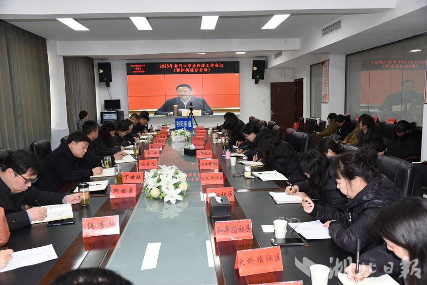 湖北日报客户端讯(通讯员李志强)2月7日上午,老河口市酂阳街道组织班子成员、机关中层干部、村(社区)党组织书记、直属单位与三个中心负责人,在酂阳街道分会场通过视频系统集中收看《2025年老河口市委经济工作会议》直播。