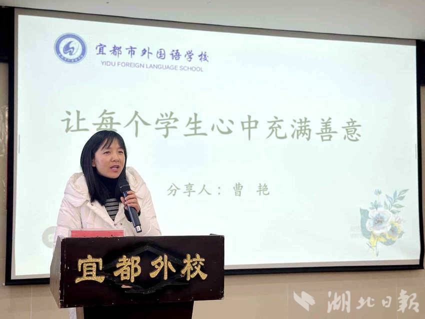展示结束后,宜昌市明星班主任曹艳进行了题为《让每个学生心中充满善意》的班级管理经验分享。她从尊重学生的想法和建议,鼓励学生积极参与班级管理,同时树立教育榜样,发挥同伴教育的力量,给予每一位学生成为他人榜样的机会。