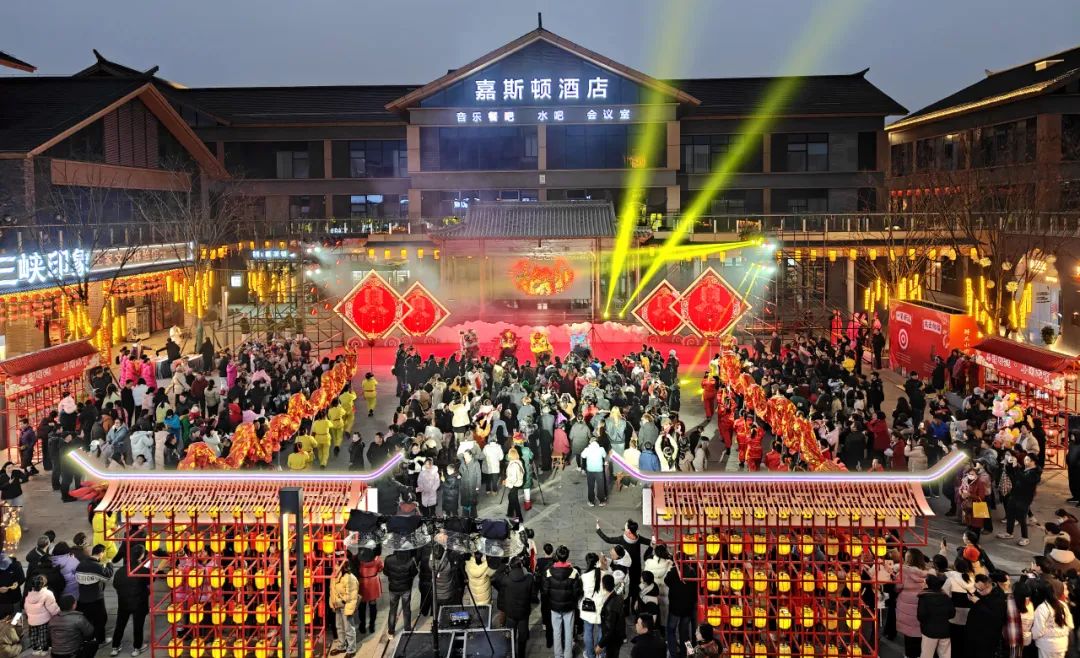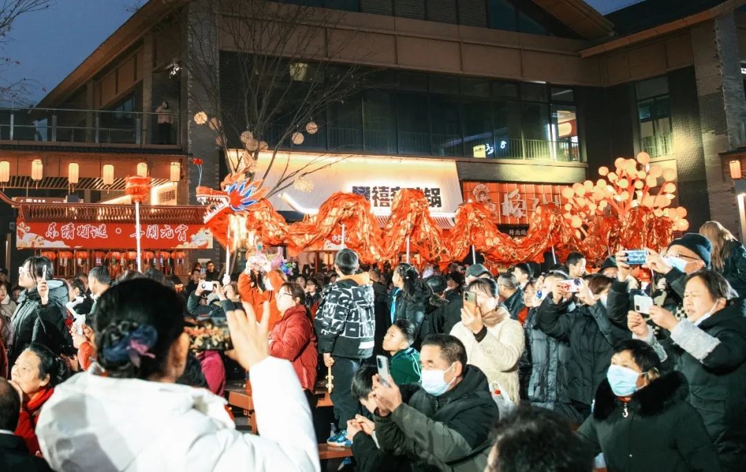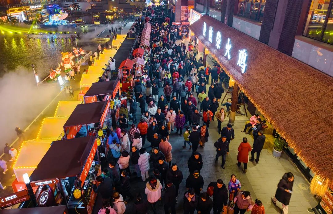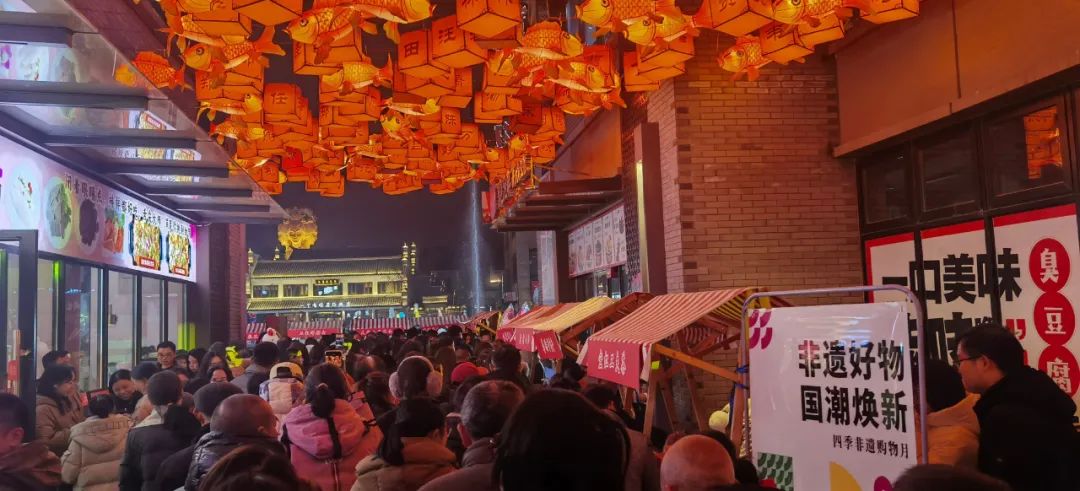 鲟龙水街张灯结彩、人山人海