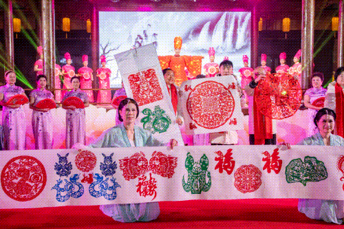 茶剪旗传承秀《华夏遗风》将茶艺、剪纸、旗袍秀融合交汇,为观众带来了独特的视觉和审美体验,尽显当地乡土风情与文化底蕴。