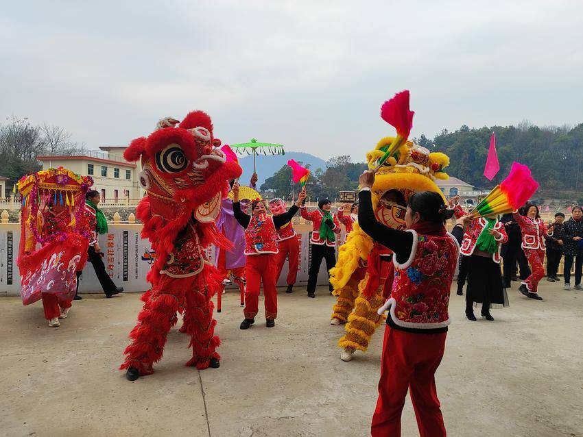 活动开场,舞狮和踩莲船表演率先登场。来自枫相树村、张家冲村的民间文艺团队,以精湛的技艺和饱满的热情,让现场瞬间热闹起来。灵动的舞狮,时而跳跃,时而腾挪,身姿矫健;踩莲船的表演者们则随着欢快的节奏,轻盈舞动,与高跷、大头娃娃一同构成了一幅充满民俗风情的欢乐画卷。