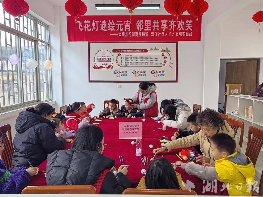 在月满人团圆的美好时刻,汉江社区嘉苑小区邻里中心内张灯结彩,处处洋溢着节日的喜庆氛围,一场以“飞花灯谜绘元宵 邻里共享齐欢笑” 为主题的元宵节活动在这里欢乐上演,吸引了众多居民、商户及小朋友们踊跃参加,大家欢聚一堂,共度这温馨团圆的元宵佳节。活动现场,红红的灯笼高高挂起,一盏盏灯笼下悬挂着精心准备的灯谜,内容涵盖了传统文化、生活常识、趣味字谜等多个领域,小朋友们穿梭其中,叽叽喳喳热烈讨论,一旦猜出谜底,便兴奋地冲向兑奖处,兑换心仪的小礼品,脸上洋溢着收获的喜悦。
