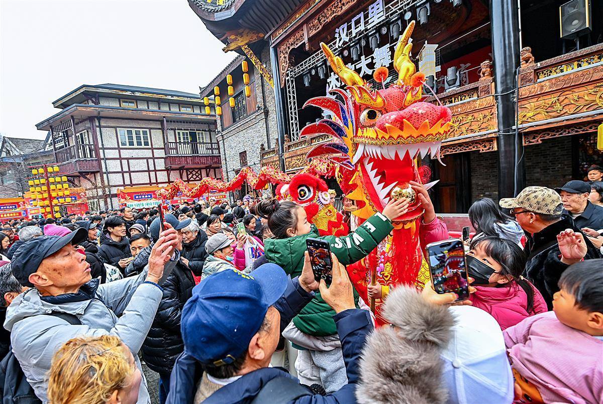 2月12日正月十五元宵节,武汉汉口里举行龙、狮、高跷巡游展演活动。此外,在汉口里山峡会馆“武汉有戏”专区,楚剧、汉剧等轮番上演,为当地群众送上“文化套餐”,也为元宵佳节增添了喜庆气氛。