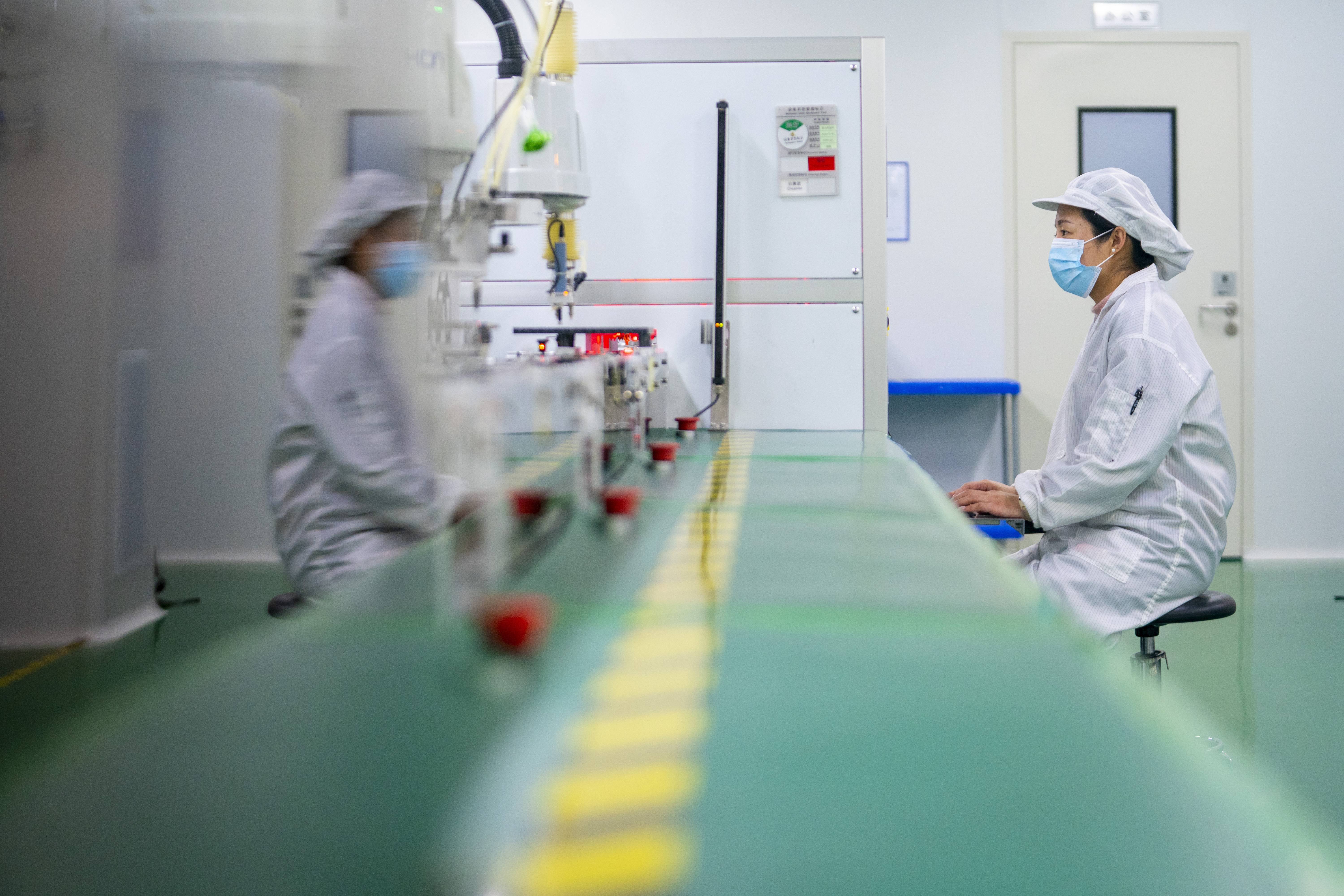 安翰科技(武汉)股份有限公司洁净车间,智能制造产线在生产微型磁控胶囊胃镜系统机器人。