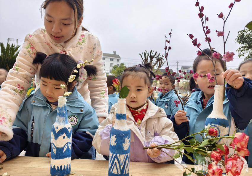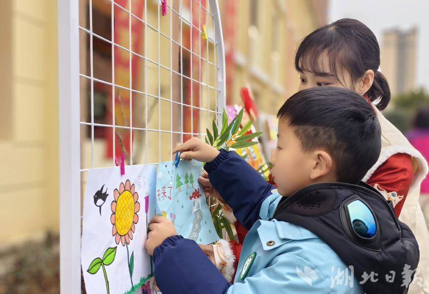 湖北日报客户端讯(通讯员 章明月)2月13日,姚家店镇中心幼儿园迎来了一场充满趣味与诗意的春日限定开学礼。老师们通过“盼春、迎春、插春、点春、咬春、躲春、戴春”等活动,开启新学期“迎春神”活动。