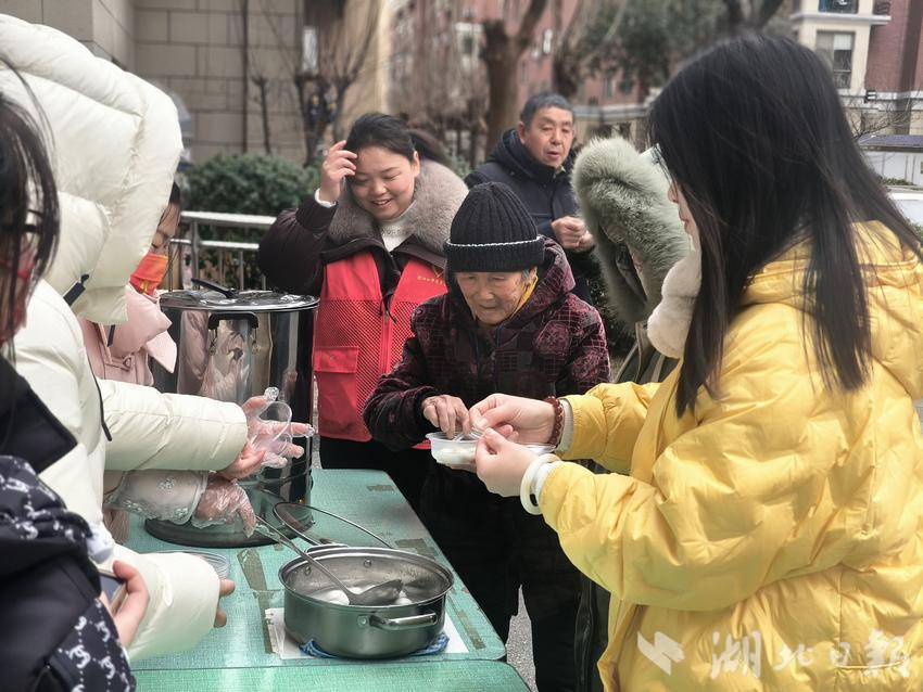 2月12日,辖区均州老街社区组织50余名志愿者为群众送出汤圆500余份,活动惠及1400余人。