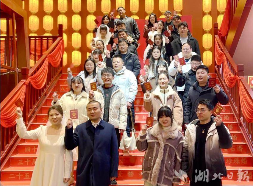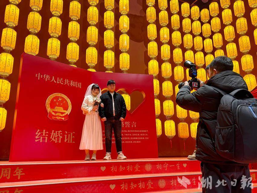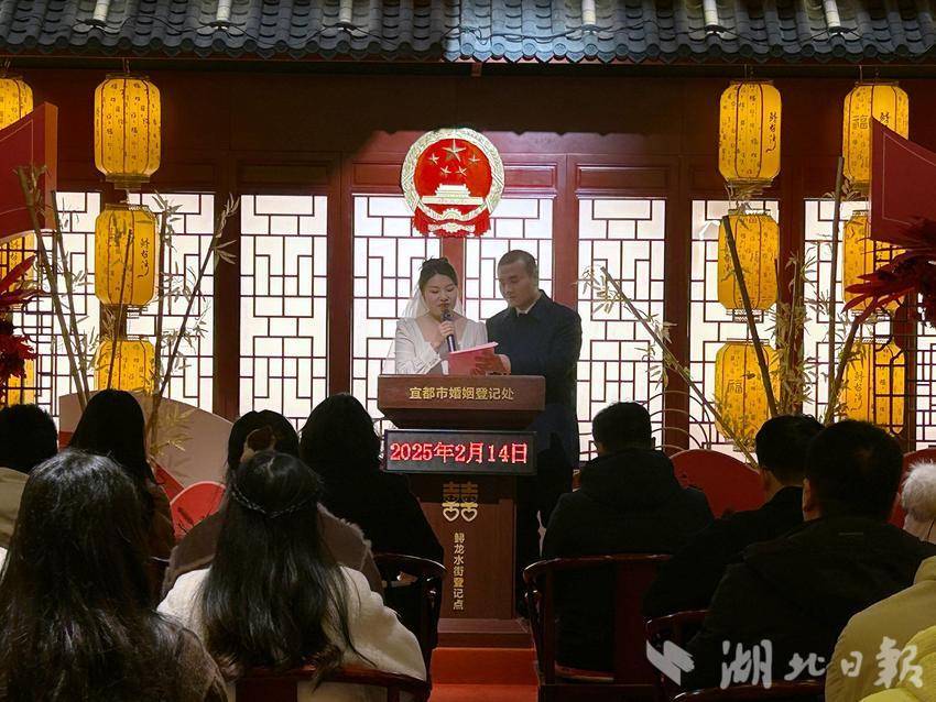 湖北日报客户端讯(通讯员幸娟娟)2月14日,宜都市民政局联合市文明办在宜都市婚姻登记处鲟龙水街登记点举办“倡文明新风,结百年之好”集体颁证活动。