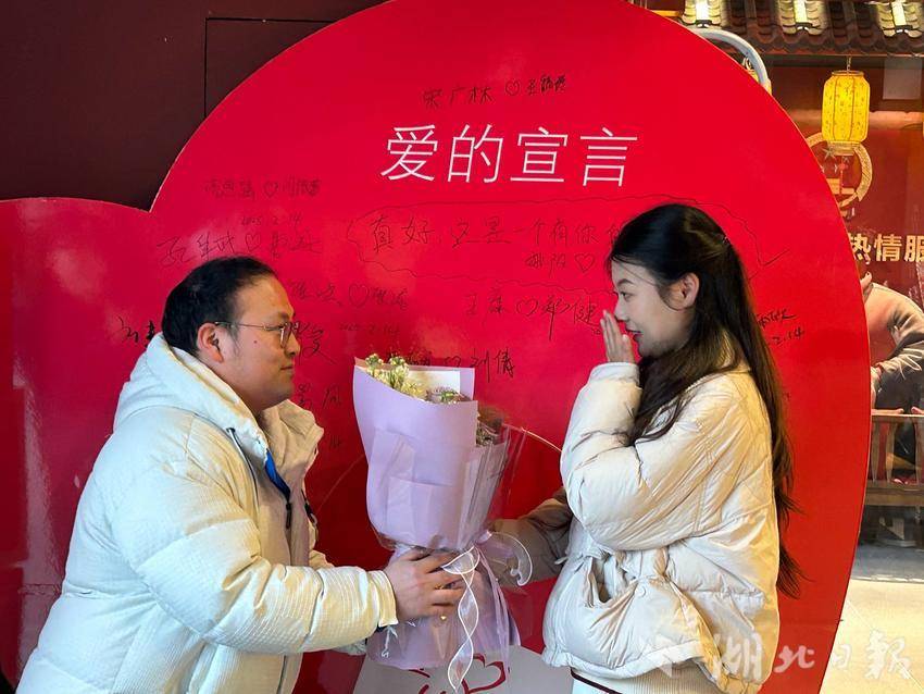 上午9时,登记大厅人气爆棚,现场设置了《爱的宣言》签字墙,前来领证的新人们纷纷签上自己姓名。现场还有寓意“甜甜蜜蜜”的糖葫芦制作,新人们在等待期间亲自为对方制作爱的糖葫芦。