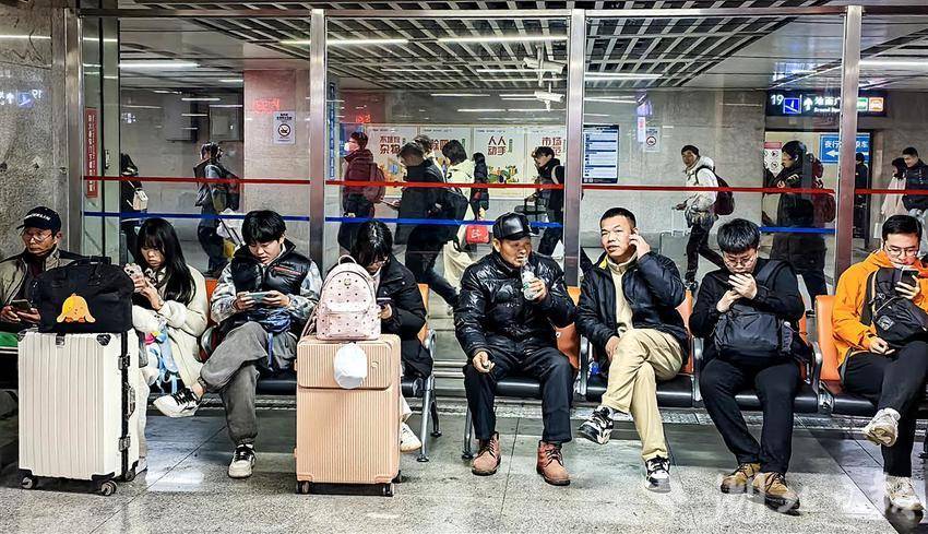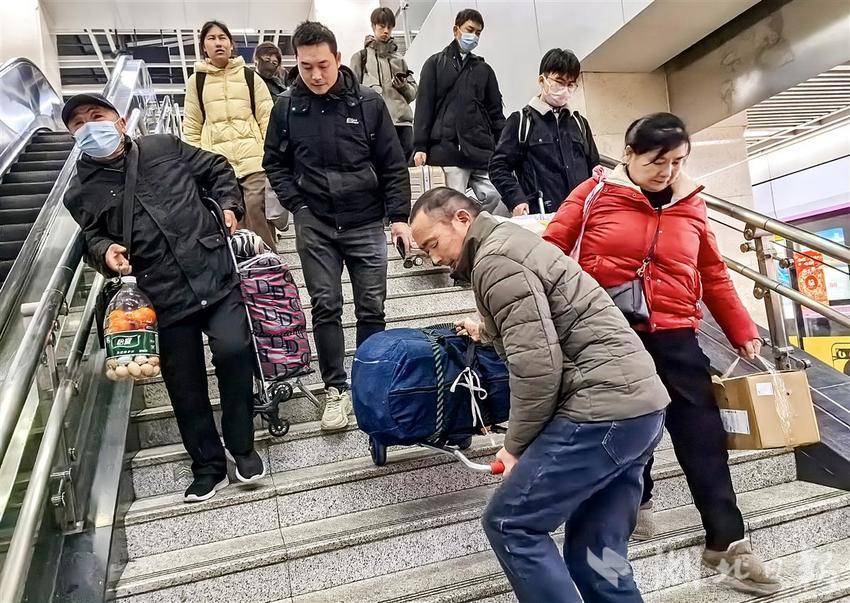 2月14日,记者在武汉汉口火车站看到,广场上旅客如织,而地下的地铁站人潮涌动,停车场车位“一位难求”。据了解,正月十五前后,全国铁路将会迎来一波返程客流高峰。(湖北日报全媒记者 朱熙勇 摄)