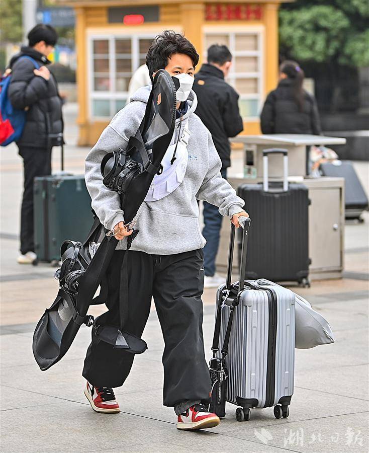 2月14日,武汉汉口火车站广场上赶路的乘客。