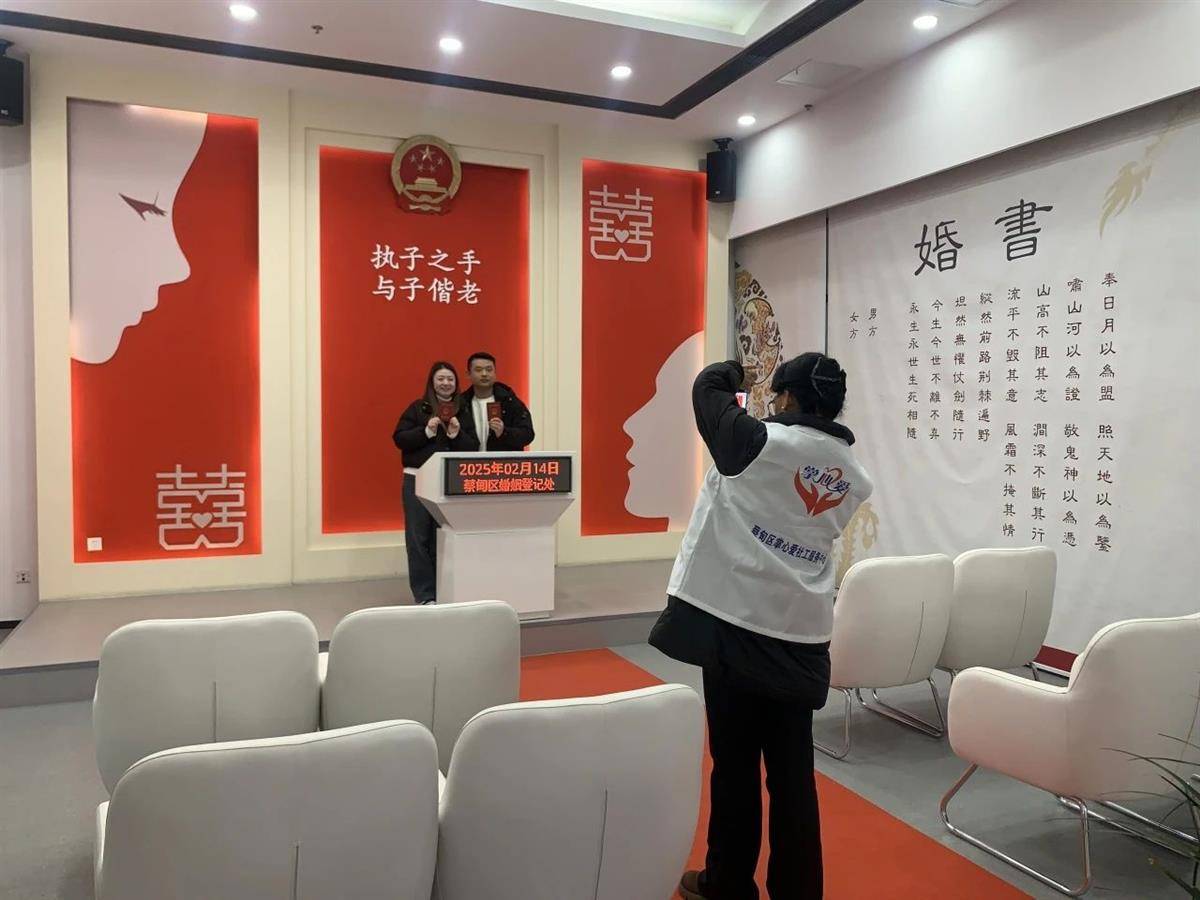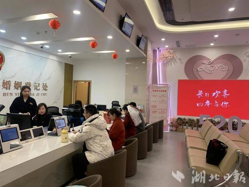 湖北日报讯(记者刘洁)2月14日,情人节,在这寓意美好的日子里,武汉市各婚姻登记处迎来蛇年首个“小高峰”,许多新人选择在这天喜结良缘,武汉民政部门多措并举,保障当天登记工作顺利开展。