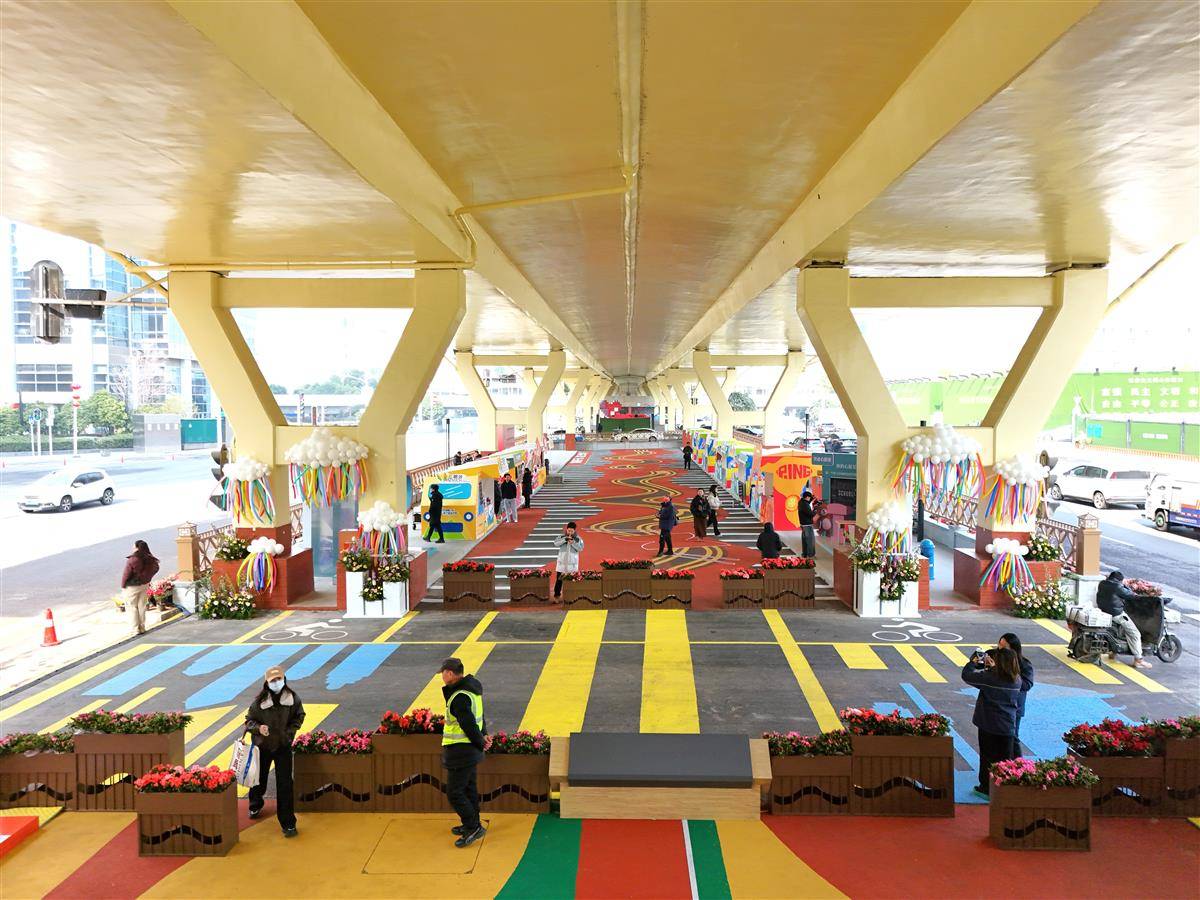改造后的黄浦大街立交桥下空间。(武汉市城管执法委 供)