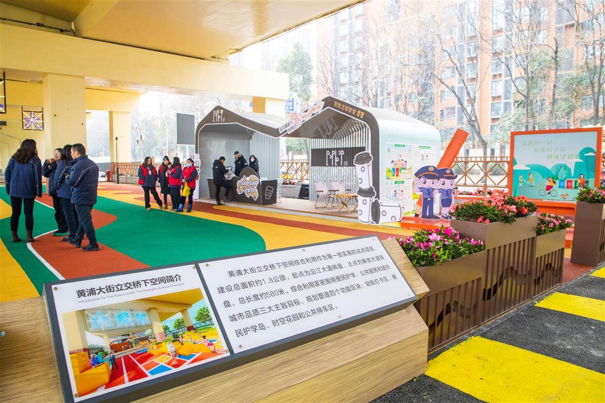 当天,黄浦大街立交桥下空间改造项目对外开放。原本废弃的桥下空间,被改造成了停车场、护学区、商业区三大功能空间,面积约1万平方米。