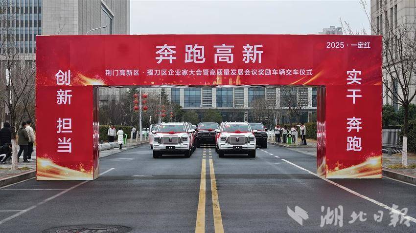 湖北日报讯(记者祝华、通讯员汪琪)2月14日,荆门高新区·掇刀区企业家大会暨高质量发展会议在荆门剧院举行。会上,掇刀区用35辆长城汽车荆门工厂生产的坦克500“一定红”、坦克400和金刚炮汽车奖励高质量发展贡献企业。